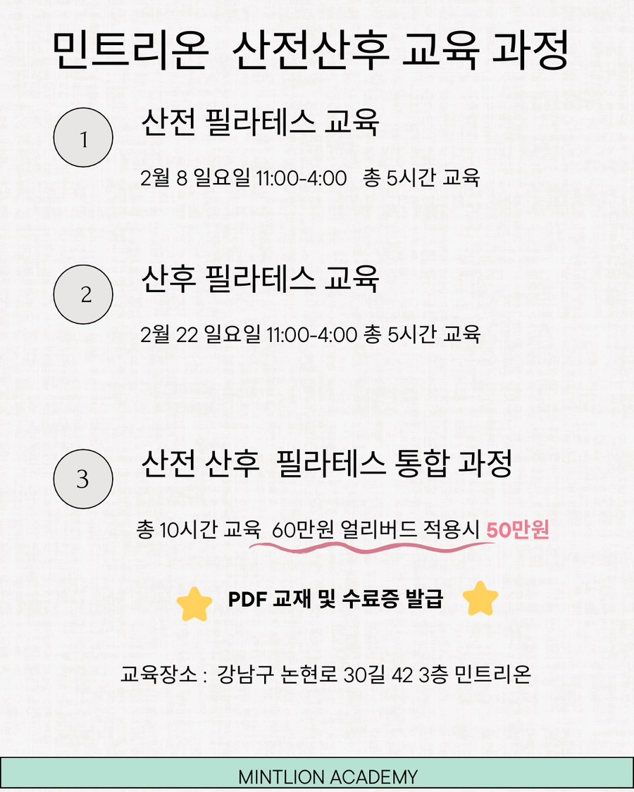 민트리온 산전·산후 필라테스 교육 과정은